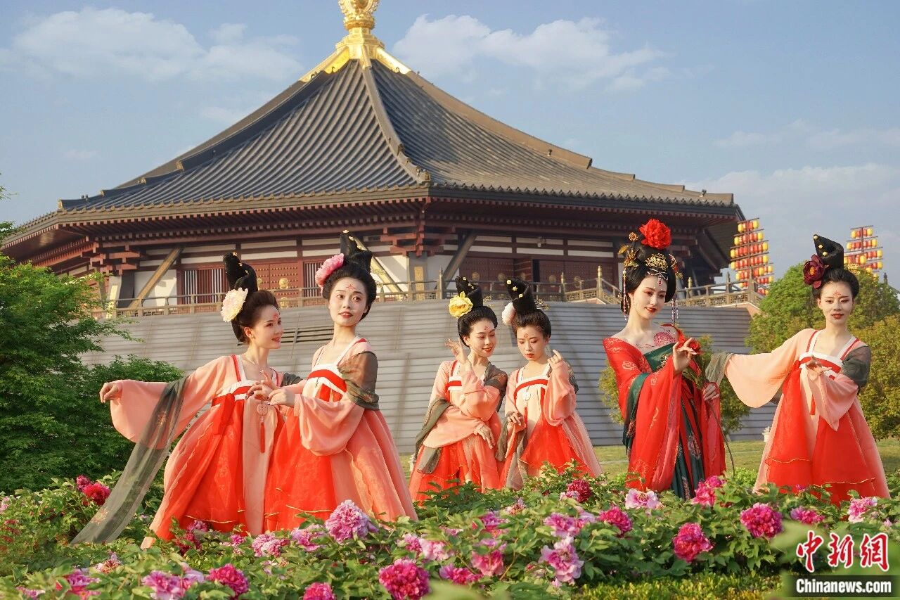 牡丹丛中的汉服秀。 牛林林 摄您绝可正在谦乡汉服妆制馆选1身汉服正在洛邑古乡、天国亮堂等天赏邦色牡丹感触感染103晨古皆的秋日放荡